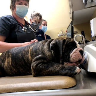 Hilarity ensues during the exam along with puppy kisses and cuddles.